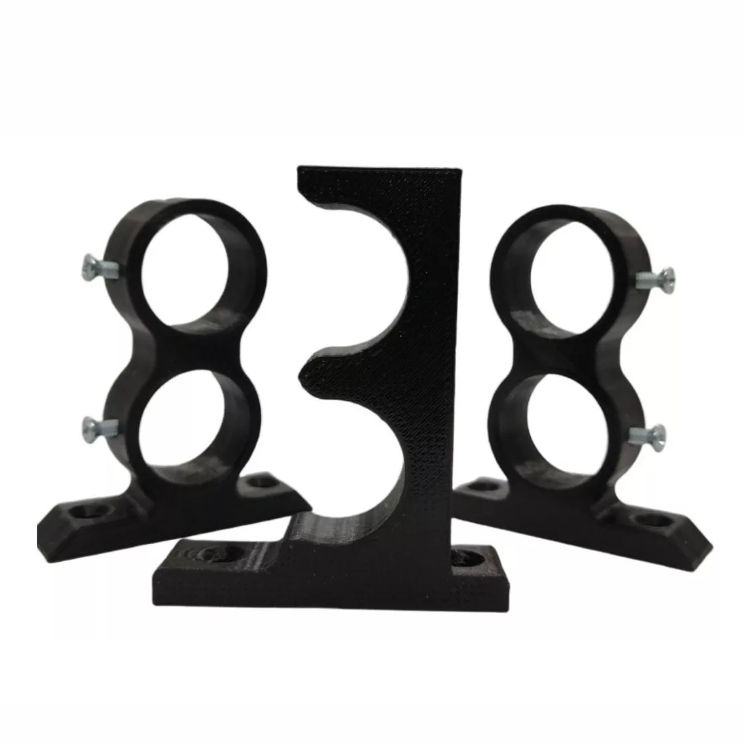 Este set incluye 2 soportes cerrados y 1 abierto, compatibles con caños o barrales de 19 mm (3/4”) de diámetro. Están fabricados en PLA de alta resistencia mediante impresión 3D, lo que garantiza excelente durabilidad y terminaciones prolijas.